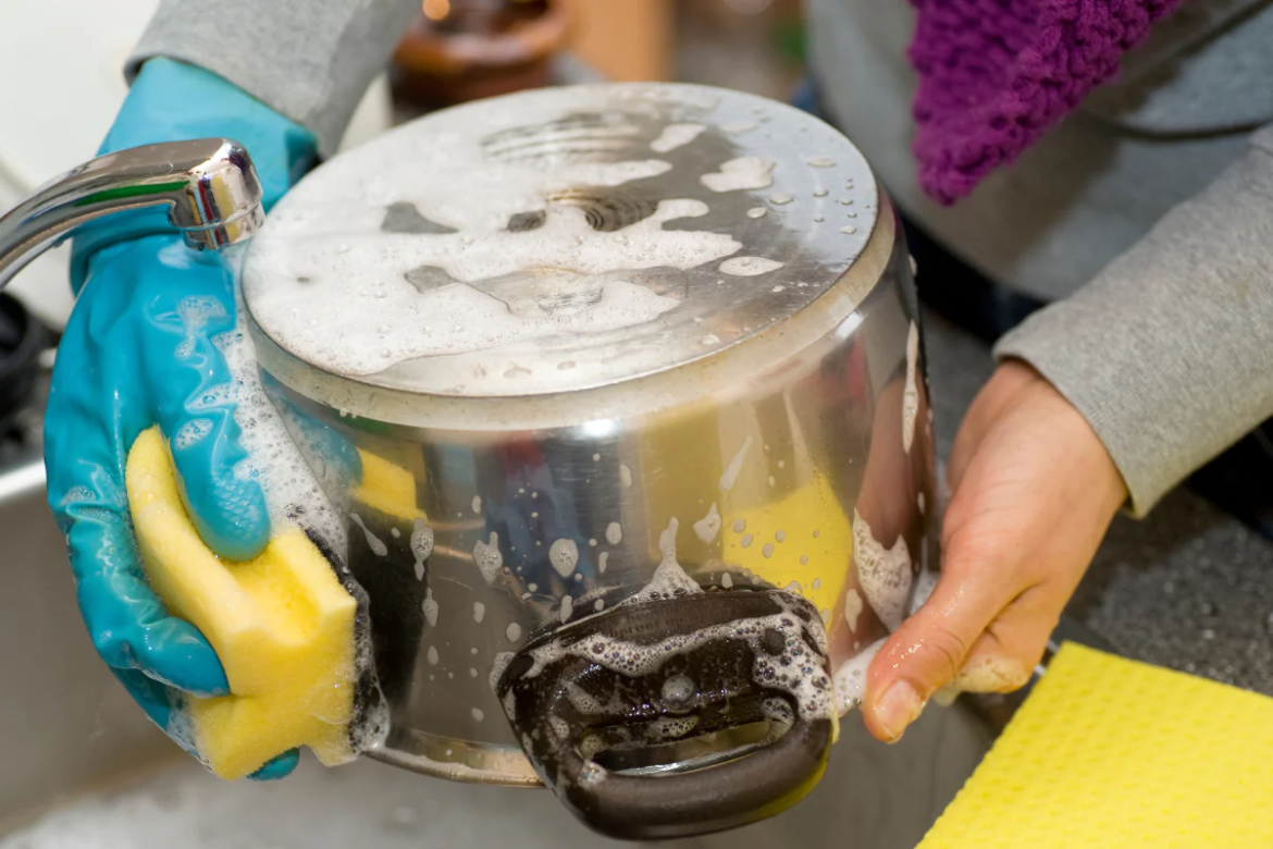 • Como evitar manchas futuras nas panelas? Seque sempre após a lavagem e evite deixar água parada na superfície.
