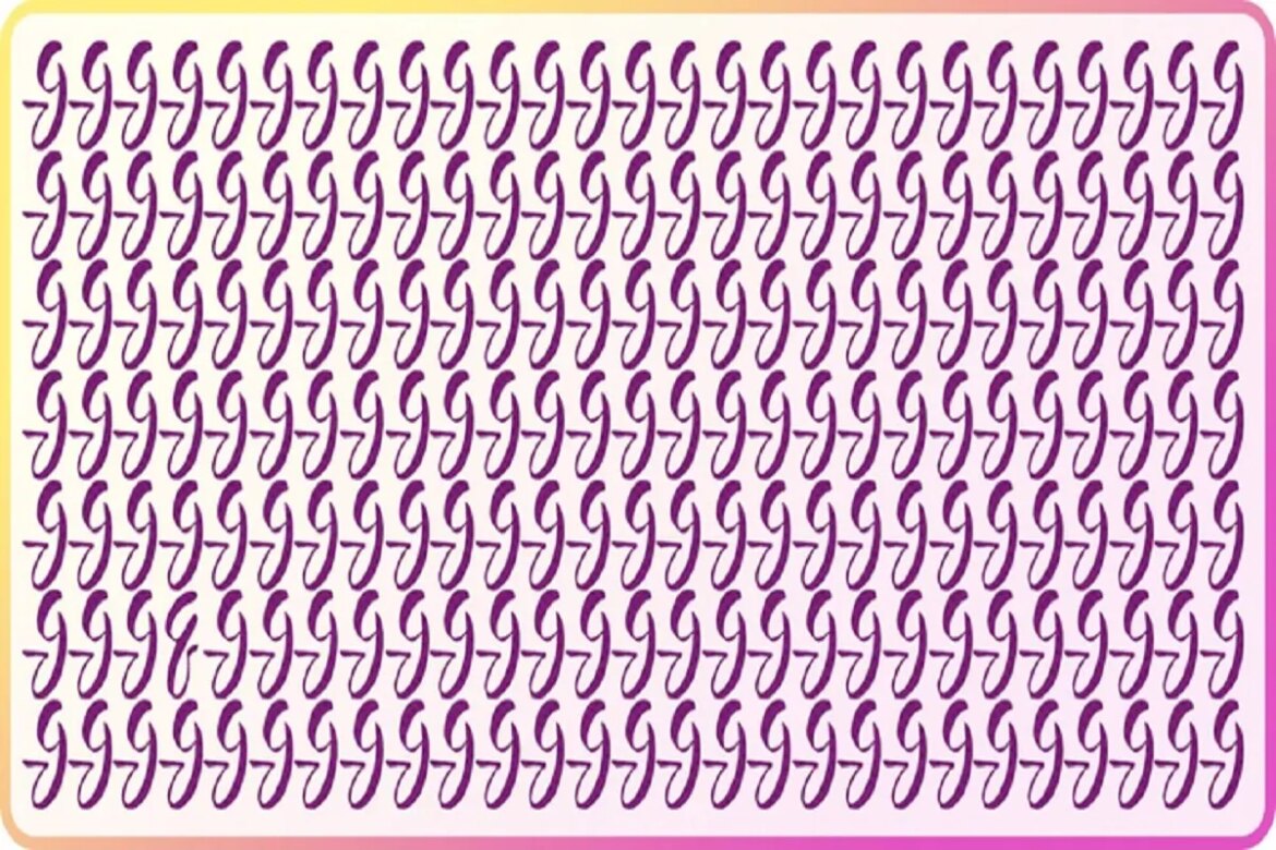 Prepare-se para o desafio de hoje que vai testar sua percepção! Observe com bastante atenção a imagem que apresenta diversas letras ‘g’ roxas repetidas em linhas, com uma única letra diferente.