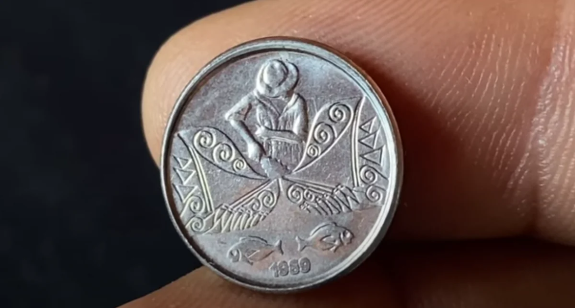 Essa é a moeda de 5 centavos do Cruzado Novo, lançada durante a reforma monetária do final dos anos 1980. Seu nome vem do design que representa um pescador no verso da peça. É uma das mais conhecidas e procuradas da época.